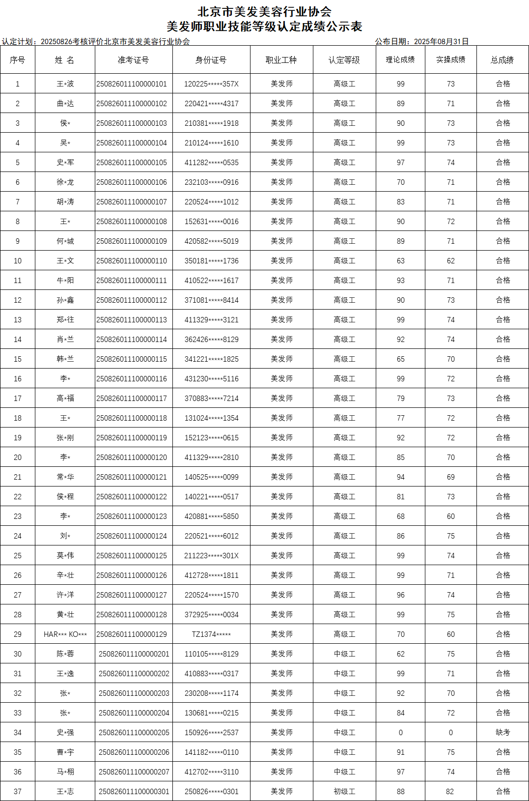 2025 年8月美发师、美容师职业技能等级认定考核成绩已于 2025 年 8月 31日公布,成绩复核申请时间为2025 年 8 月 31日至 9月 6 日(共 7 天)。如对本人成绩有异议,请在规定时间内联系我们提交复核申请。