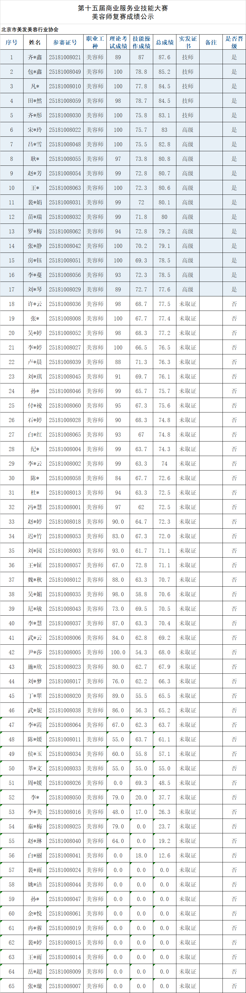 北京市北京美协美发师、美容师复赛成绩公示(北美协赛区美容师复赛成绩)