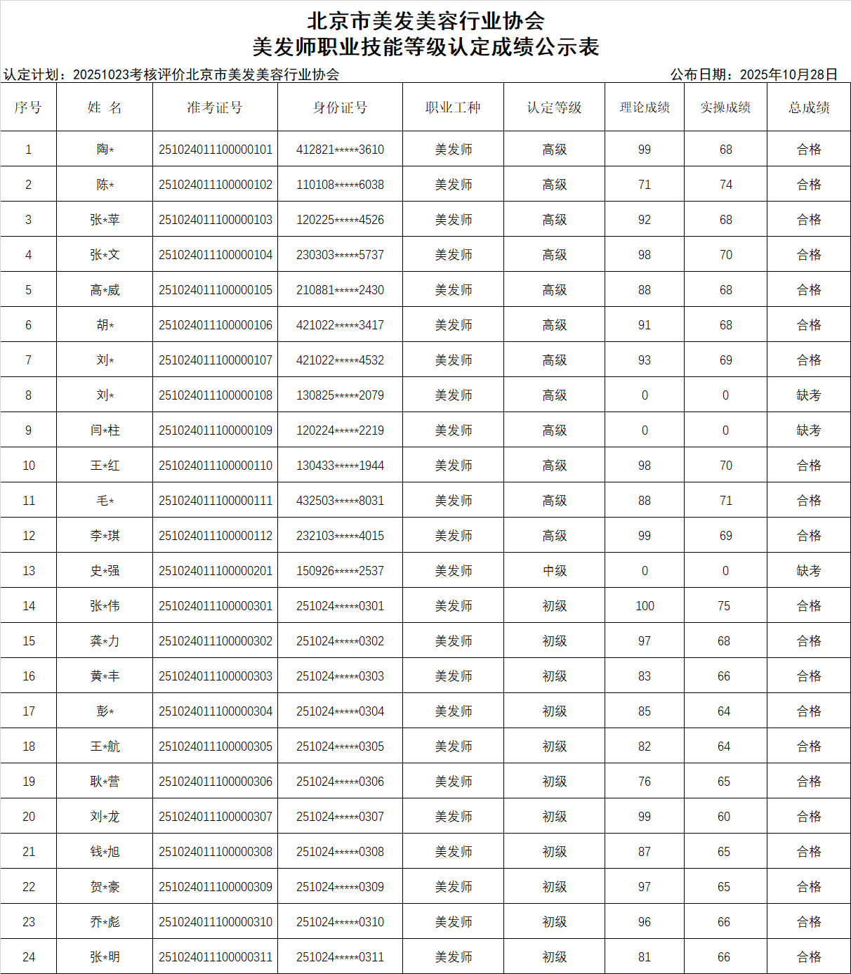 2025 年10月美发师、美容师职业技能等级认定考核成绩已于 2025 年 10月 28日公布,成绩复核申请时间为2025 年 10 月 28日至 11月 3日(共 7 天)。如对本人成绩有异议,请在规定时间内联系我们提交复核申请。