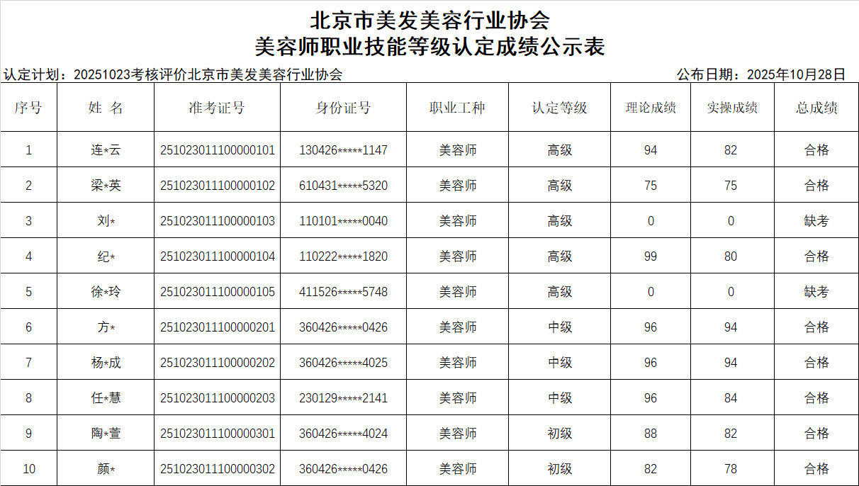 2025 年10月美发师、美容师职业技能等级认定考核成绩已于 2025 年 10月 28日公布,成绩复核申请时间为2025 年 10 月 28日至 11月 3日(共 7 天)。如对本人成绩有异议,请在规定时间内联系我们提交复核申请。