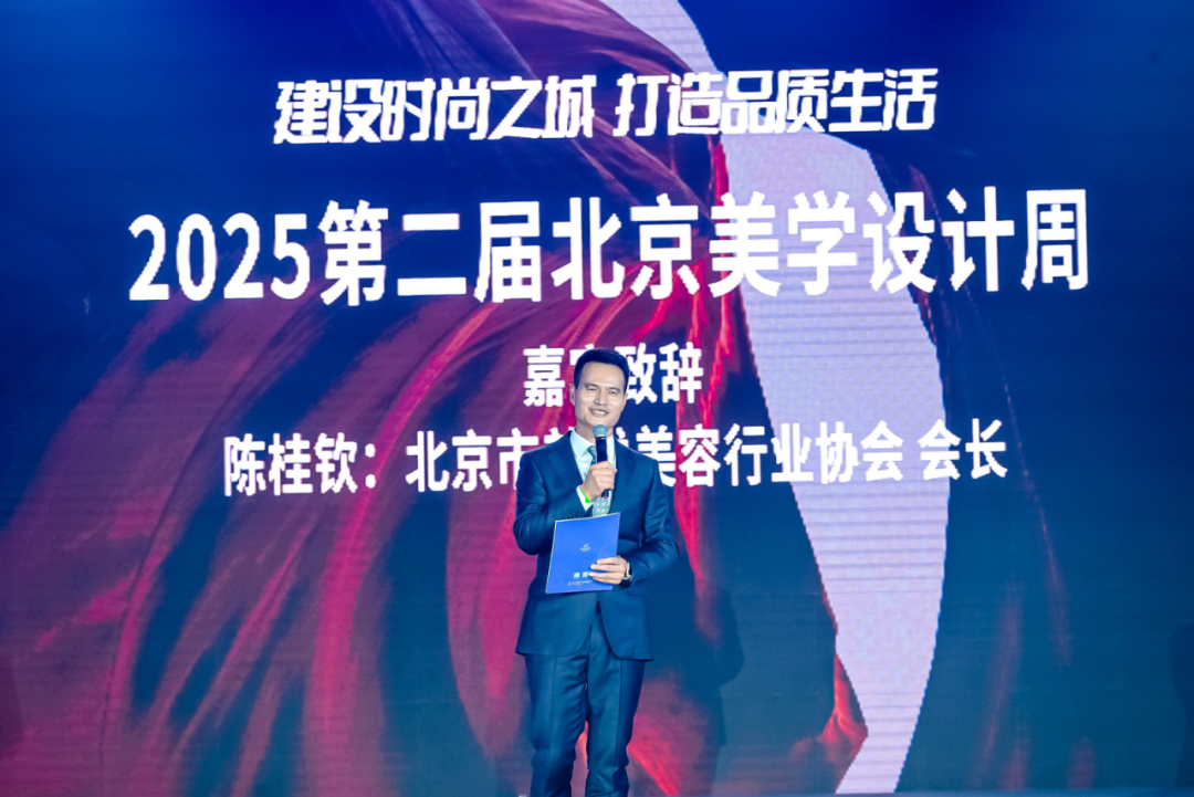 10月 28日,“2025 第二届中国北京美学设计周” 盛大启幕,活动以 “建设时尚之城 打造品质生活” 为主题,北京市美发美容行业协会会长陈桂钦携秘书长李剑勇出席活动,陈桂钦会长在会上致贺词。